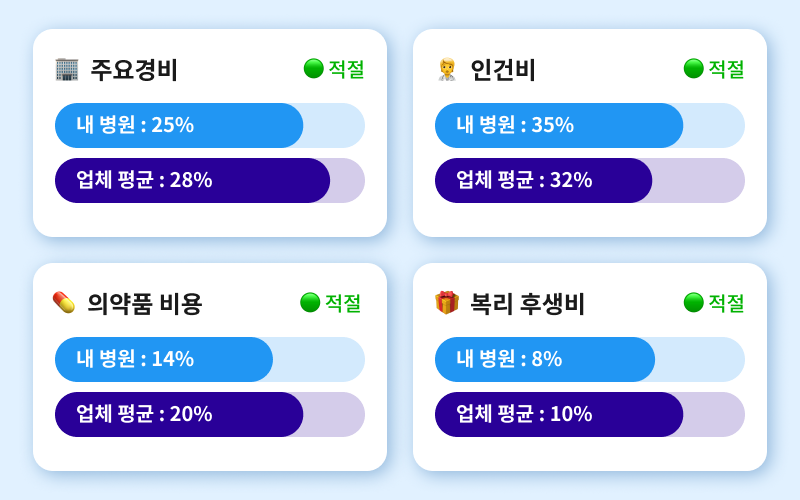 - 동일 업종/규모 대비 비용 비율